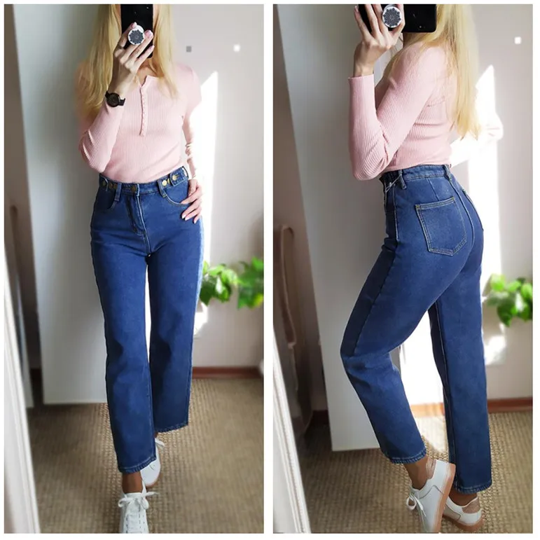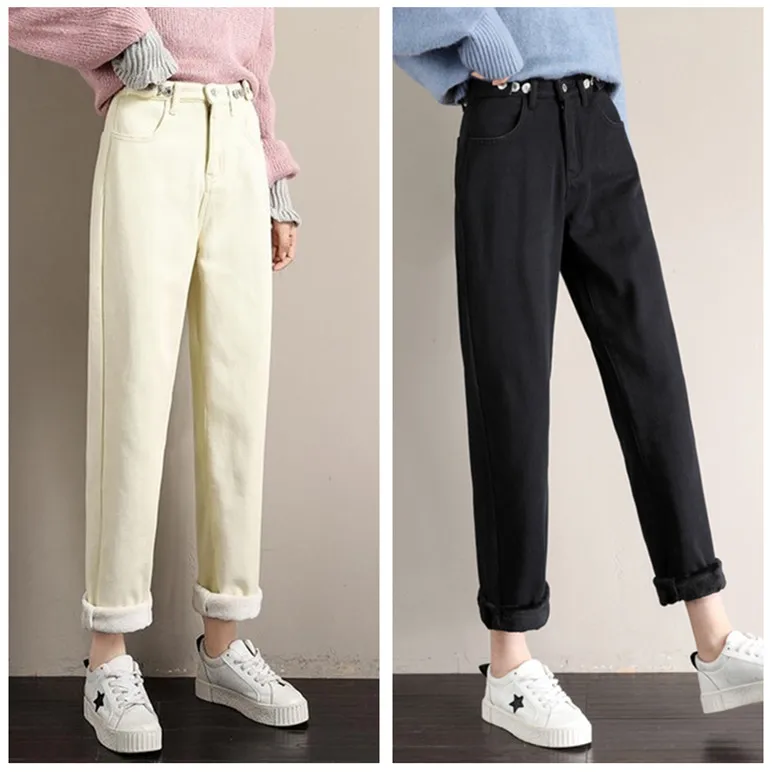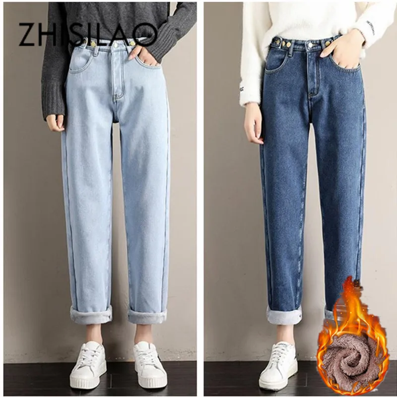 Special Offer Vintage futro dżinsy proste damskie zimowe dżinsy 2019 wysokiej talii chłopaka spodnie dżinsowe luźne dżinsy dla mamy Mujer Street Retro Discount 30% Today!