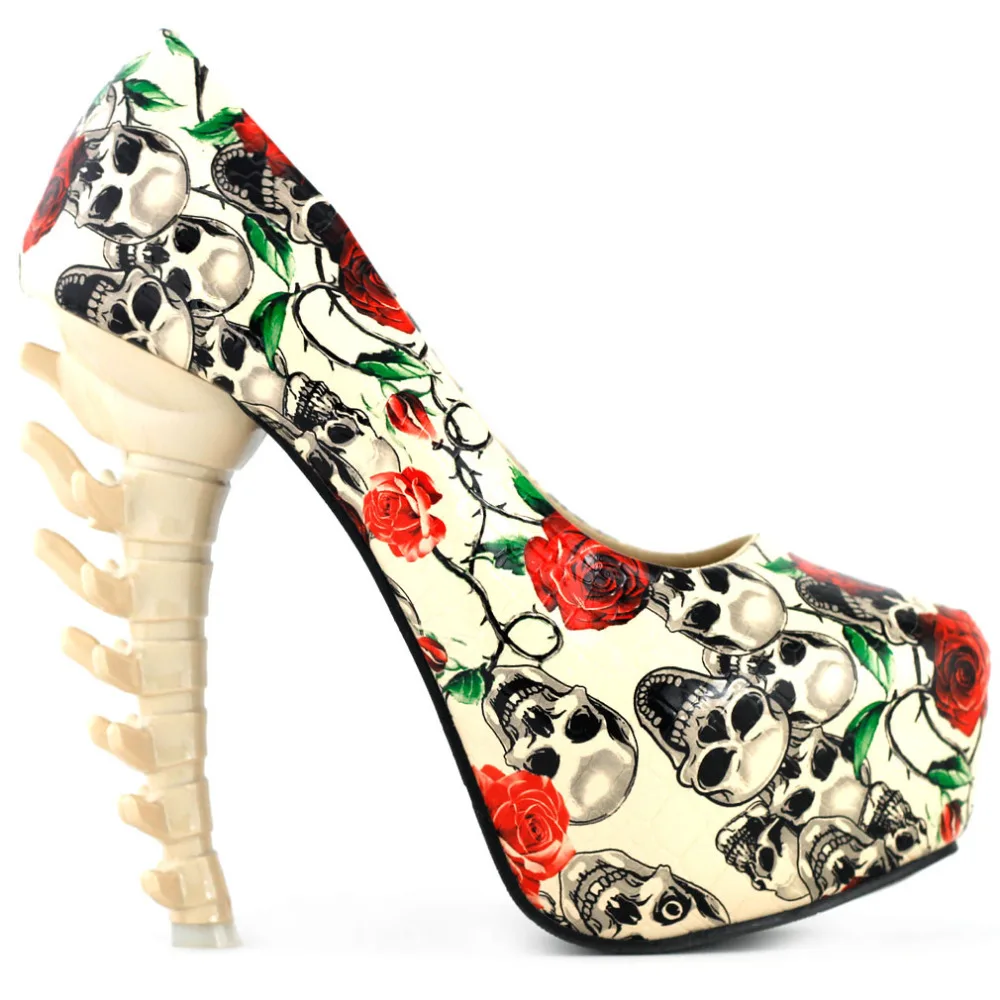 Special Offer LF80610 beżowa czaszka nadruk z różą platforma obcas kości do klubu na imprezę pompy Discount 0% Today!