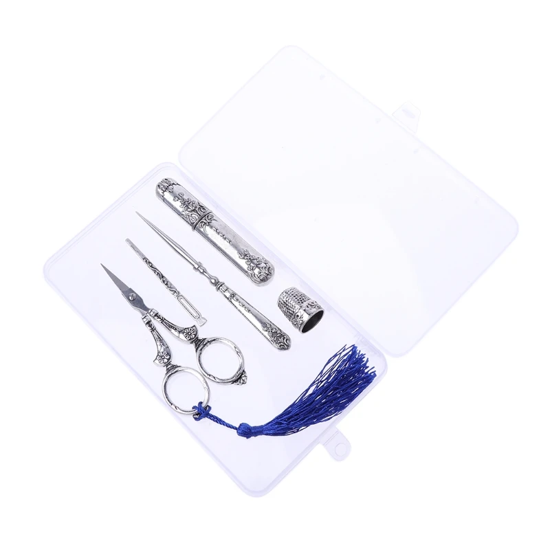. (Zniżka 18%) Tanie Bezpłatna dostawa 1 zestaw Vintage haft nożycowy igła Case szycie naparstek szydło narzędzia do szycia Ceny.