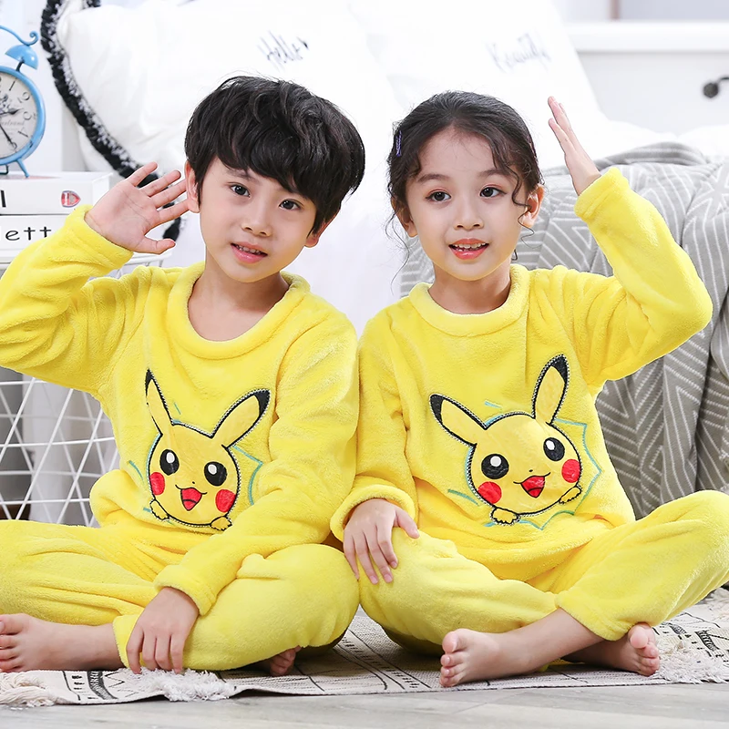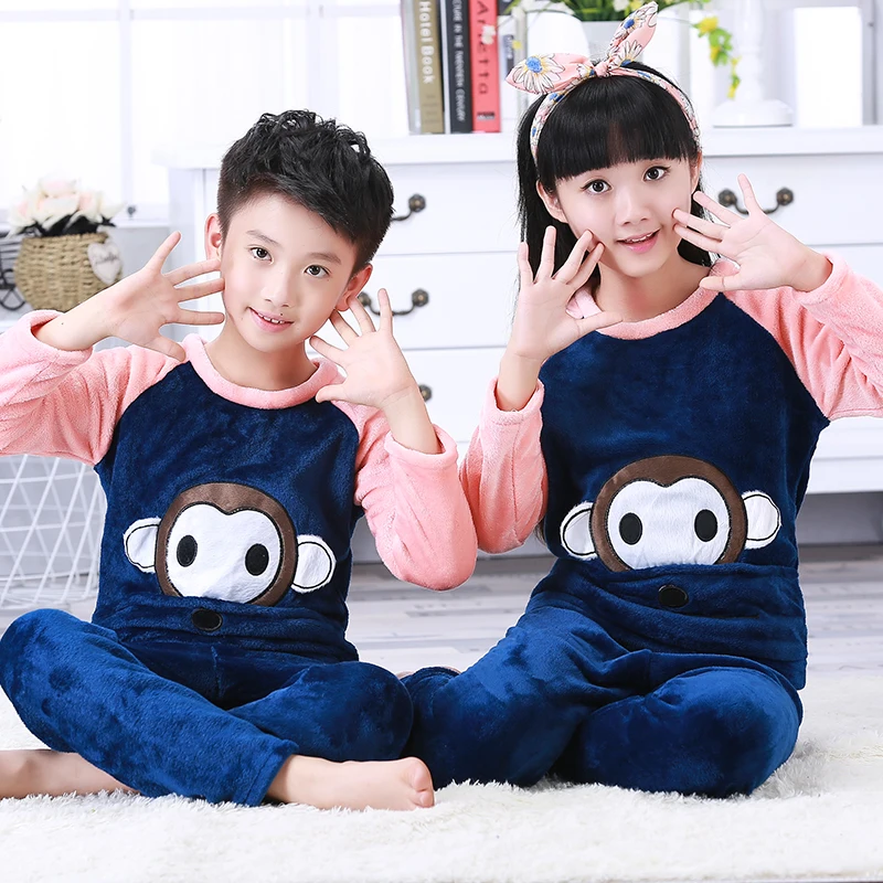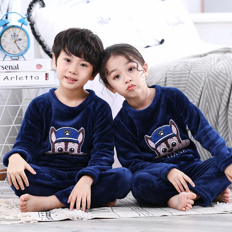 . (Zniżka 20%) Skup Tanie 2019 zima dzieci polarowa piżama zagęścić ciepłe flanelowe piżamy dziewczyny Loungewear koral polar dzieci piżamy chłopiec długi Top + spodnie Cena.
