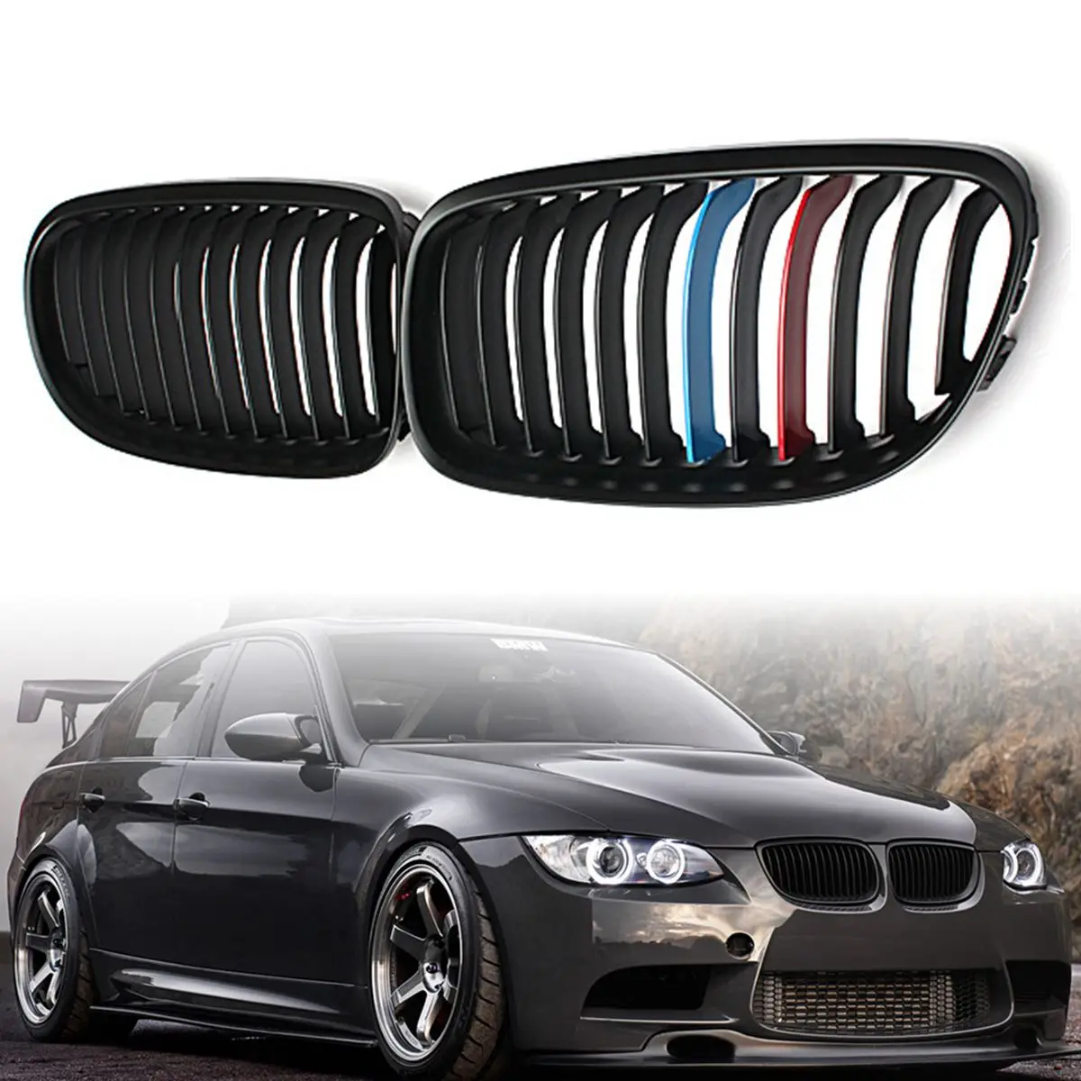 . (Zniżka 21%) Tanie Para matowy czarny błyszczący samochód przednia maskownica do bmw E90 LCI 3 Series Sedan Wagon 09 11 Racing grille Ceny.