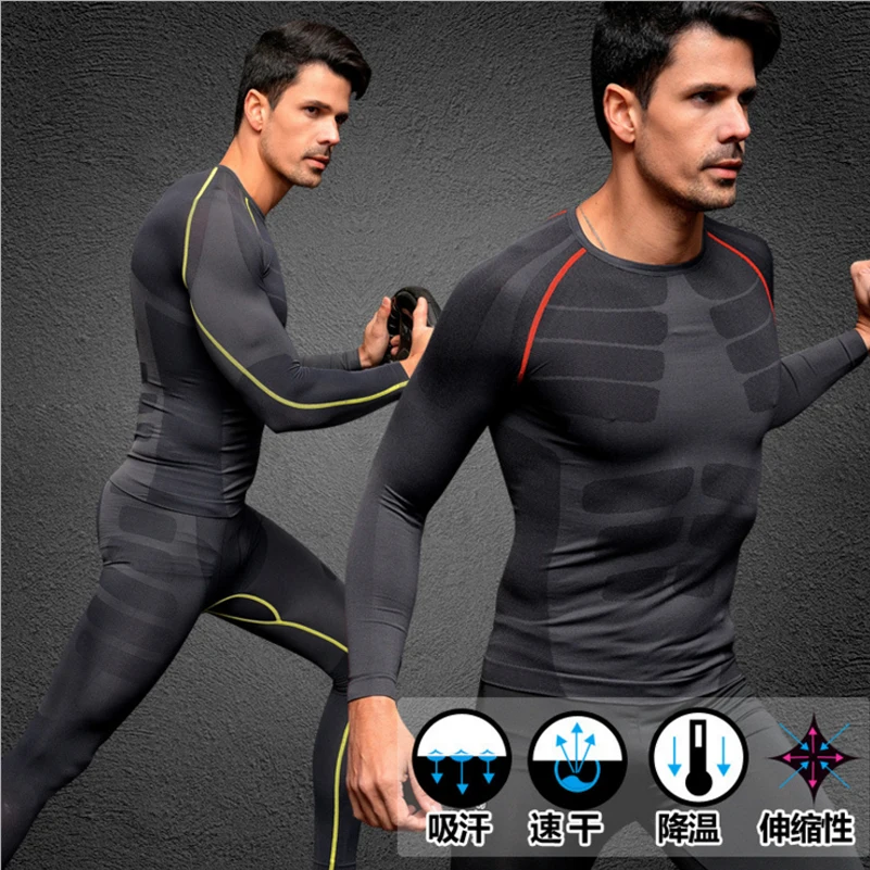 Special Offer Europejskie spodnie kompresyjne + topy męskie szybkie suche oddychające fajne uczucie męskie długie bielizna fitness urządzenie do modelowania sylwetki Discount 25% Today!