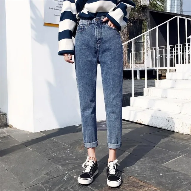. (Zniżka 35%) Tanie 2019 wysokiej talii dżinsy kobieta mycia wybielanie spodnie damskie damskie dżinsy typu boyfriend Skinny Denim luźne rocznika Plus rozmiar dżinsy dla mamy Cena.