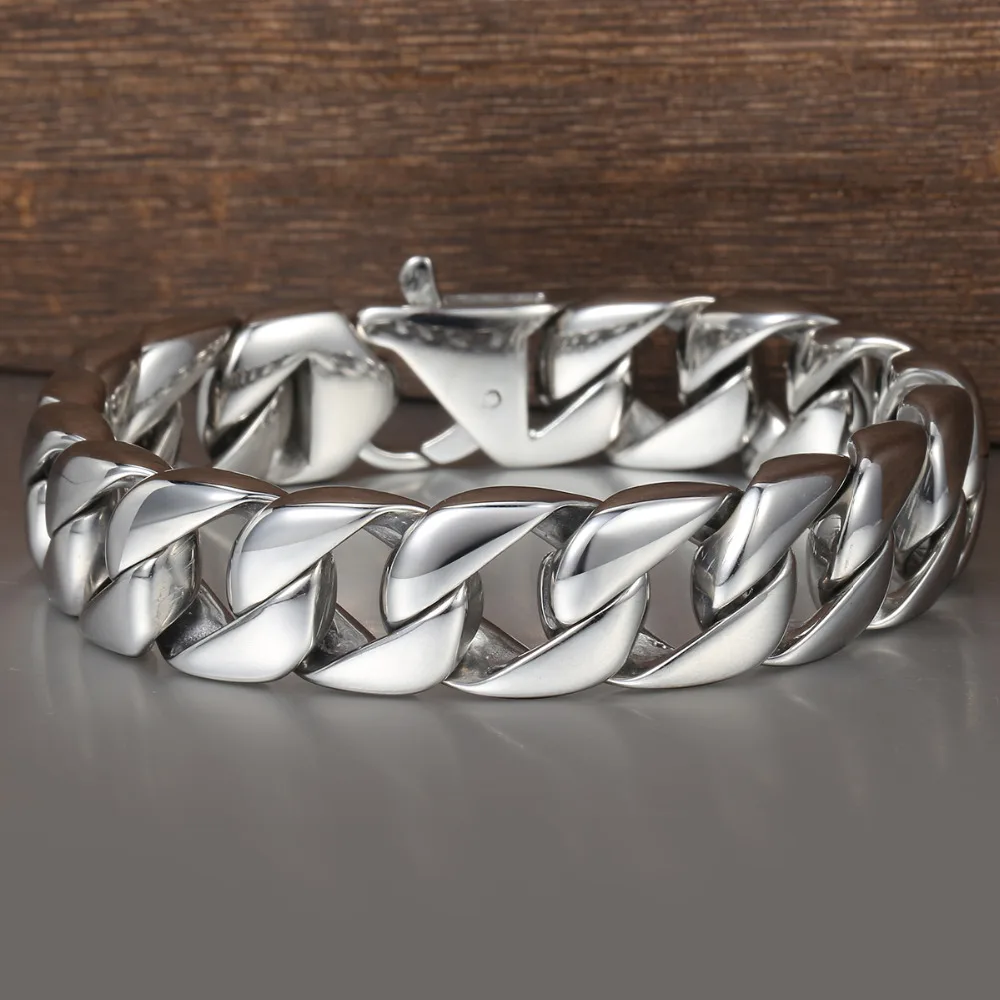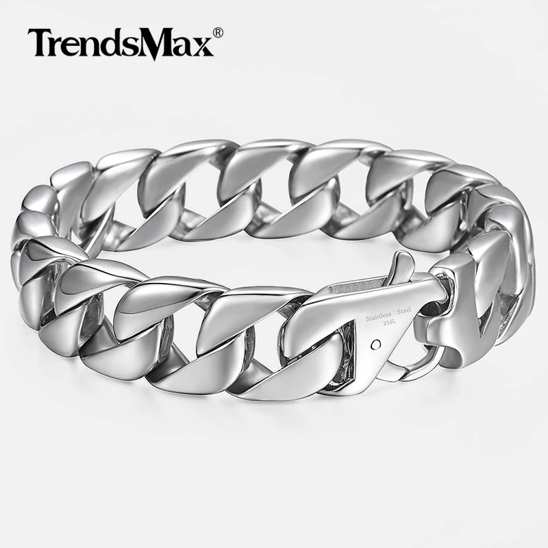 . (Zniżka 41%) Skup Tanie 14mm męska bransoletka srebrny stal nierdzewna 316L okrągły Curb kubański Link Chain bransoletki biżuteria męska rewelacyjny prezent dla mężczyzn 8.62 \"HB164 Ceny.