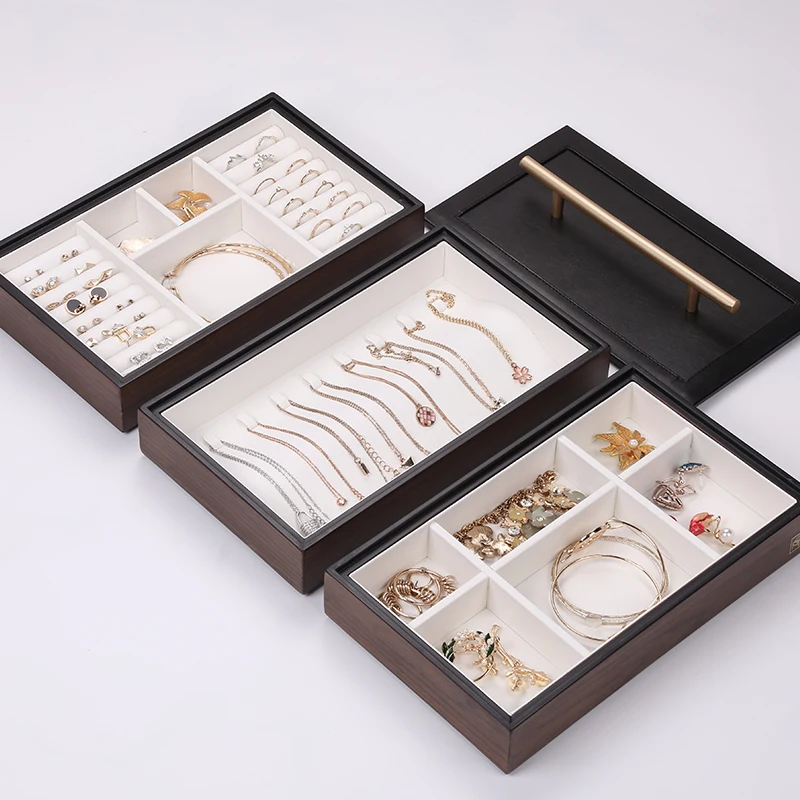 Special Offer Casegrace 2019 nowy drewniana biżuteria pudełko z uchwytem trzy do przechowywania z warstwową konstrukcją organizer biżuterii walizki do przenoszenia kobiety pierścionki pudełko na naszyjnik Discount 42% Today!