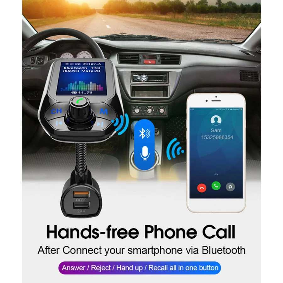 Special Offer AGETUNR T43 1.8 \"kolorowy wyświetlacz TFT o przekątnej zestaw samochodowy bluetooth zestaw głośnomówiący zestaw 3 Port USB QC3.0 szybkie ładowanie nadajnik FM MP3 odtwarzacz muzyczny Discount 43% Today!