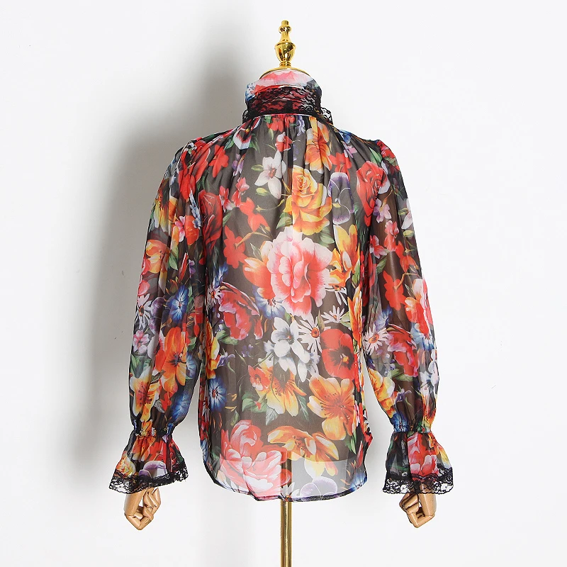 Special Offer TWOTWINSTYLE koszule damskie bluzka Bowknot Flare z długim rękawem patchworkowa koronka koszule z nadrukiem kobieta elegancka moda 2019 wiosna nowe Discount 50% Today!