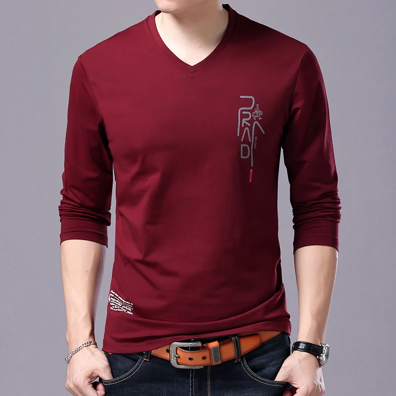 Special Offer 2019 nowa marka modowa T Shirt dla mężczyzn koreański prezent dla chłopaka trendy topy Streetwear V Neck drukuj koszulka z długim rękawem mężczyzn ubrania Discount 53% Today!