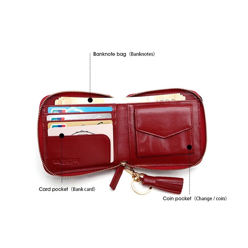 Special Offer LAFESTIN marka kobiety portfel marka portfel ze skóry naturalnej Fringe Coin etui na karty kredytowe damski zamek błyskawiczny portfel portmonetki Discount 54% Today!