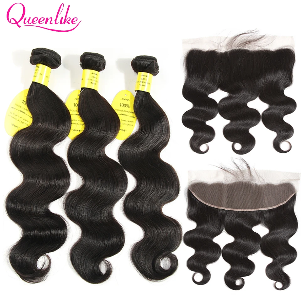 Special Offer QueenLike włosów 13x4 koronka Frontal zamknięcie z wiązki nie włosy brazylijskie remy wyplata ciało fala człowieka wiązki włosów z zamknięciem Discount 74% Today!