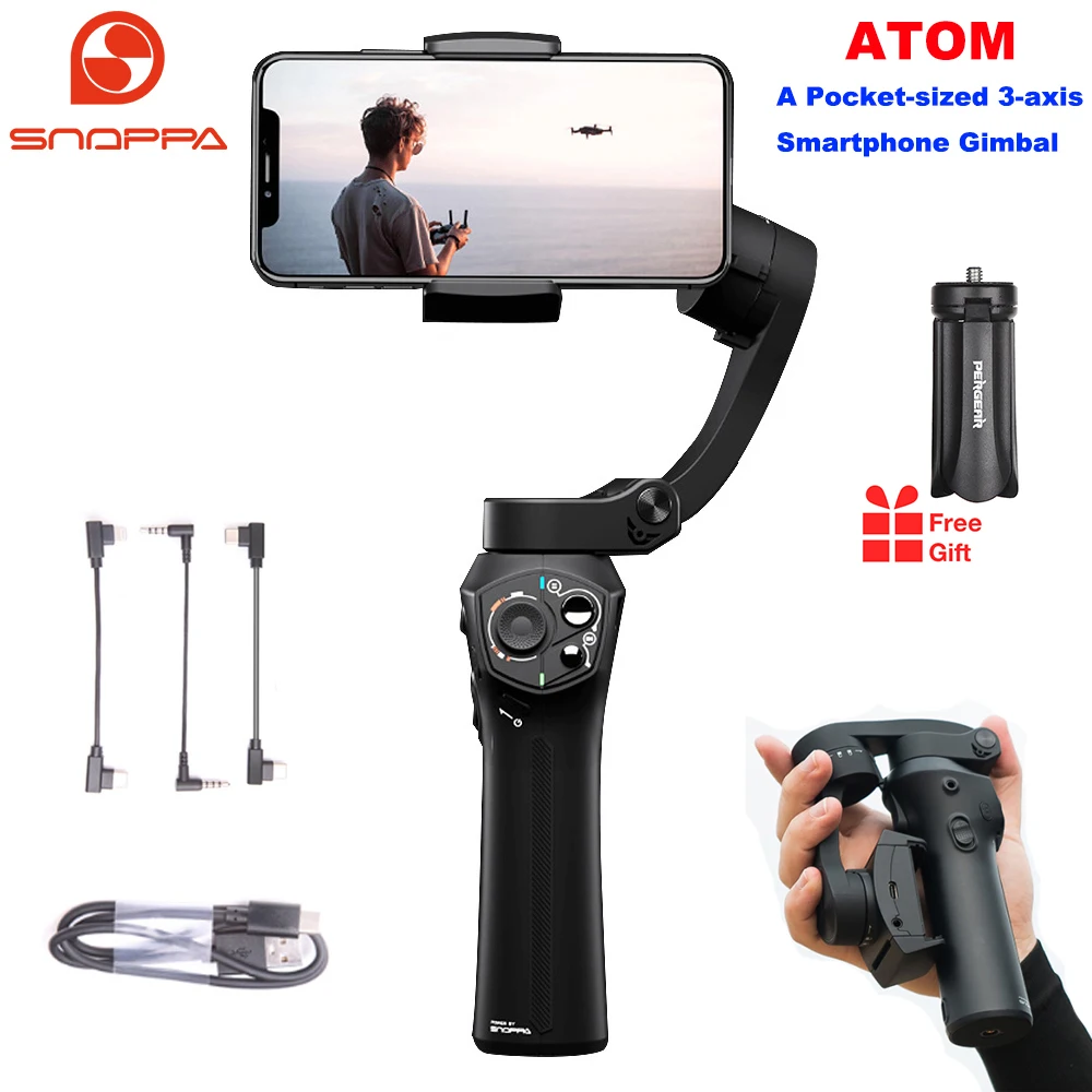 . (Zniżka 0%) Skup Tanie Snoppa Atom 3 osi składany kieszonkowy ręczny stabilizator gimbal dla iPhone Smartphone GoPro i ładowania bezprzewodowego PK gładka 4 Cena.