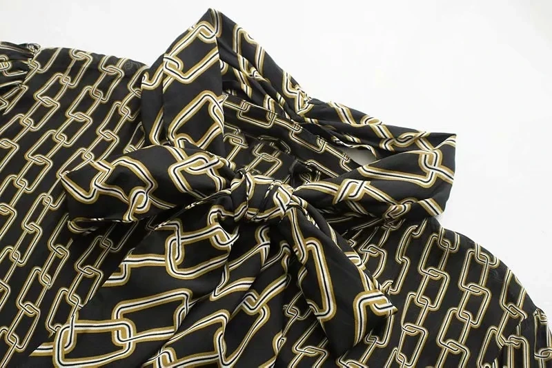 . (Zniżka 0%) Skup Zwiędły anglia proste biuro pani łańcuch drukowanie łuk szyi kimono koszula kobiety blusas mujer de moda 2019 tshirt kobiet topy Najtaniej Ceny.