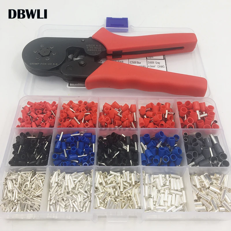 . (Zniżka 15%) Tanie 1530 sztuk 0.25 10mm2 23 10AWG HSC8 6 4 6 6 0.25 6mm2 szczypce do zaciskania elektryczne końcówki rur box clamp tools Kit Ferrule Crimper Cena.