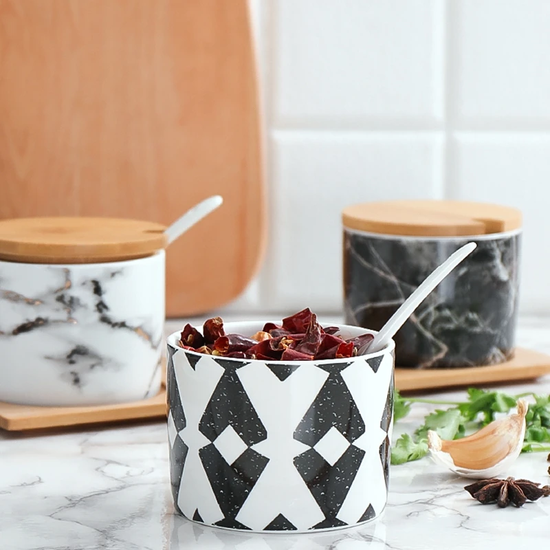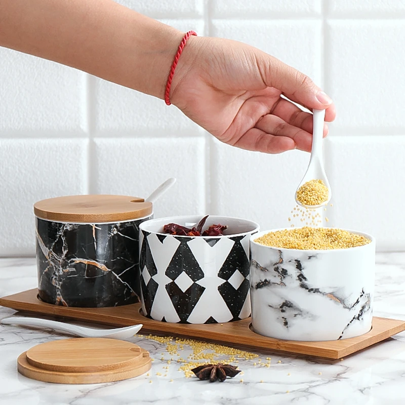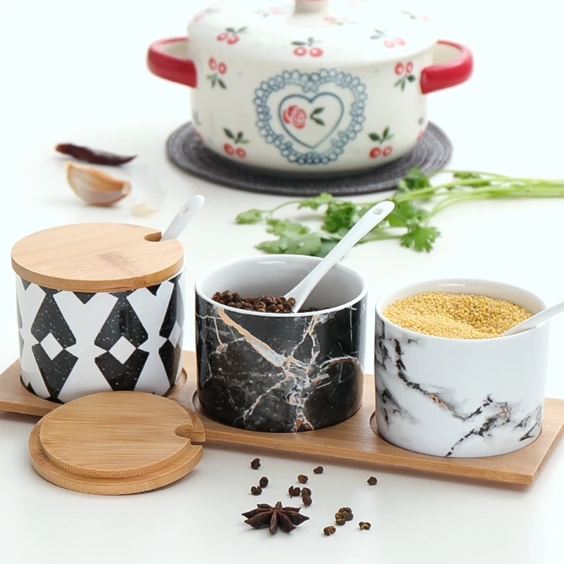Special Offer 3 sztuk ceramiczne kuchnia zestaw buteleczek słoik na przyprawy z bambusowa pokrywka i tacy przybory kuchenne słoik na przyprawy przyprawy zestaw butelek Discount 15% Today!
