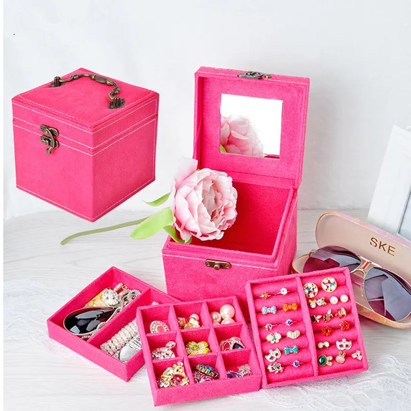 Special Offer Wydanie w stylu koreańskim sierść królika trzy warstwy jelenia flanelowe pudełko z biżuterią etui na biżuterię aksamitne pudełko do przechowywania dziesięć kolorów opcjonalnie Discount 16% Today!