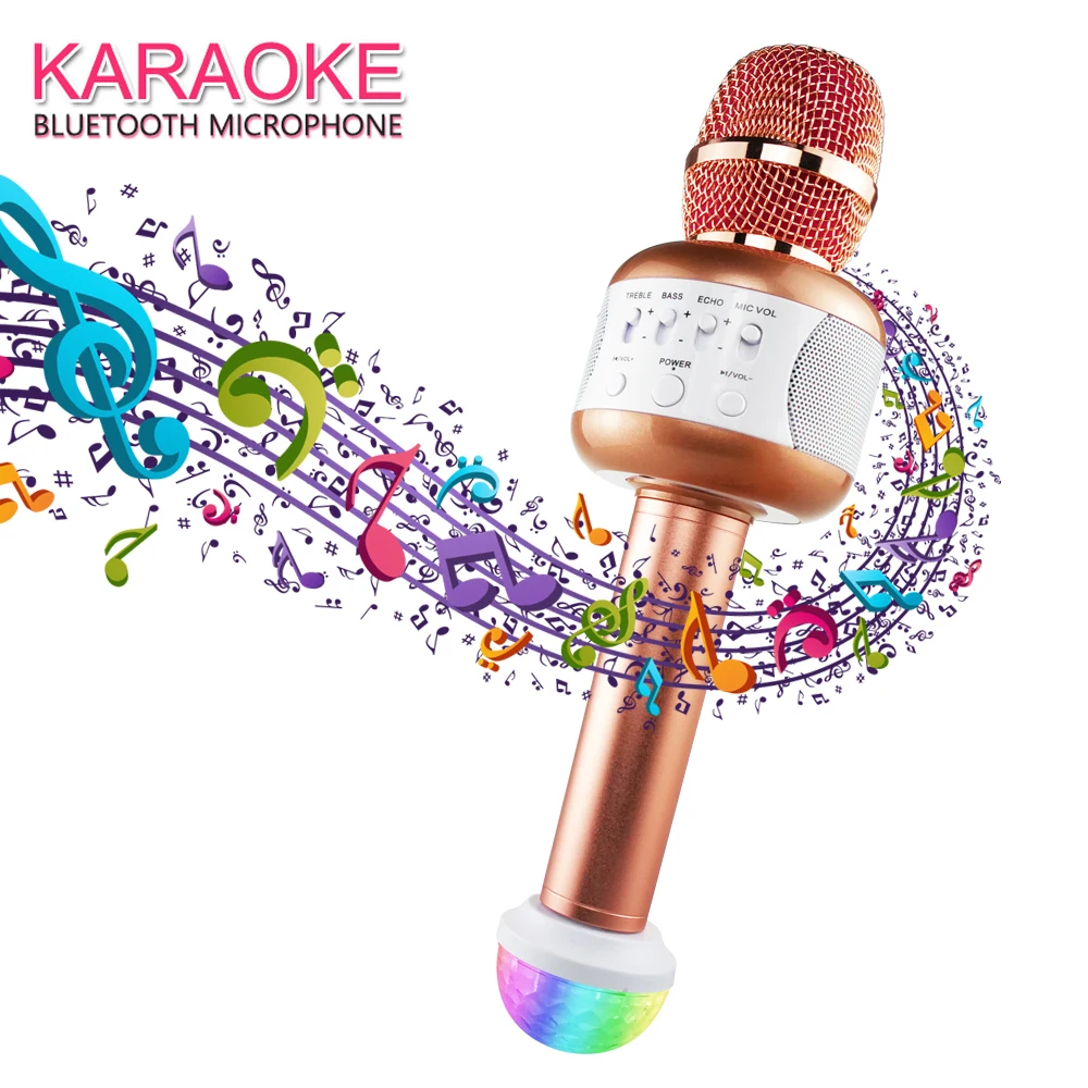 . (Zniżka 21%) Skup Tanie Profesjonalny bezprzewodowy Mikrofon do karaoke głośnik Bluetooth Mikrofon ręczny Mikrofon Party KTV śpiewanie wsparcie dla smartfonów Ceny.