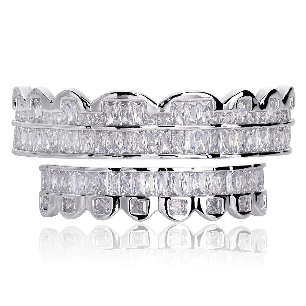 Special Offer Nowy niestandardowy zestaw bagietek zęby grillz góra i dół kolor srebrny grille stomatologiczne do ust Hip Hop biżuteria biżuteria raper prezent Discount 25% Today!