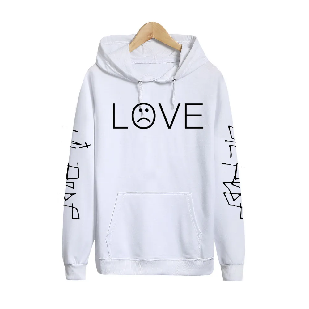 . (Zniżka 30%) Tanie Pkorli lil peep miłość bluza mężczyźni kobiety luźny pulower Hip Hop lil peep raper bluzy smutna mina chłopcy z kapturem Ceny.