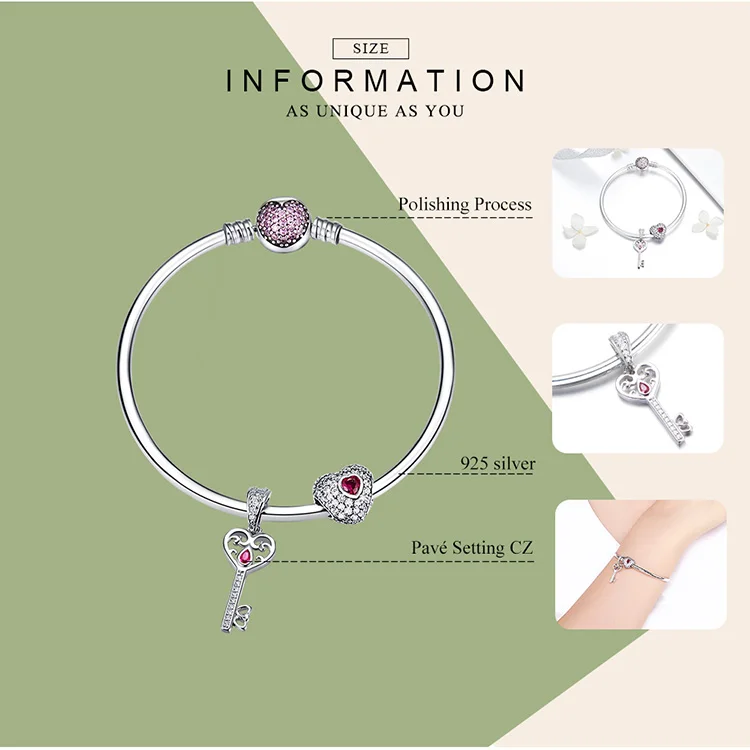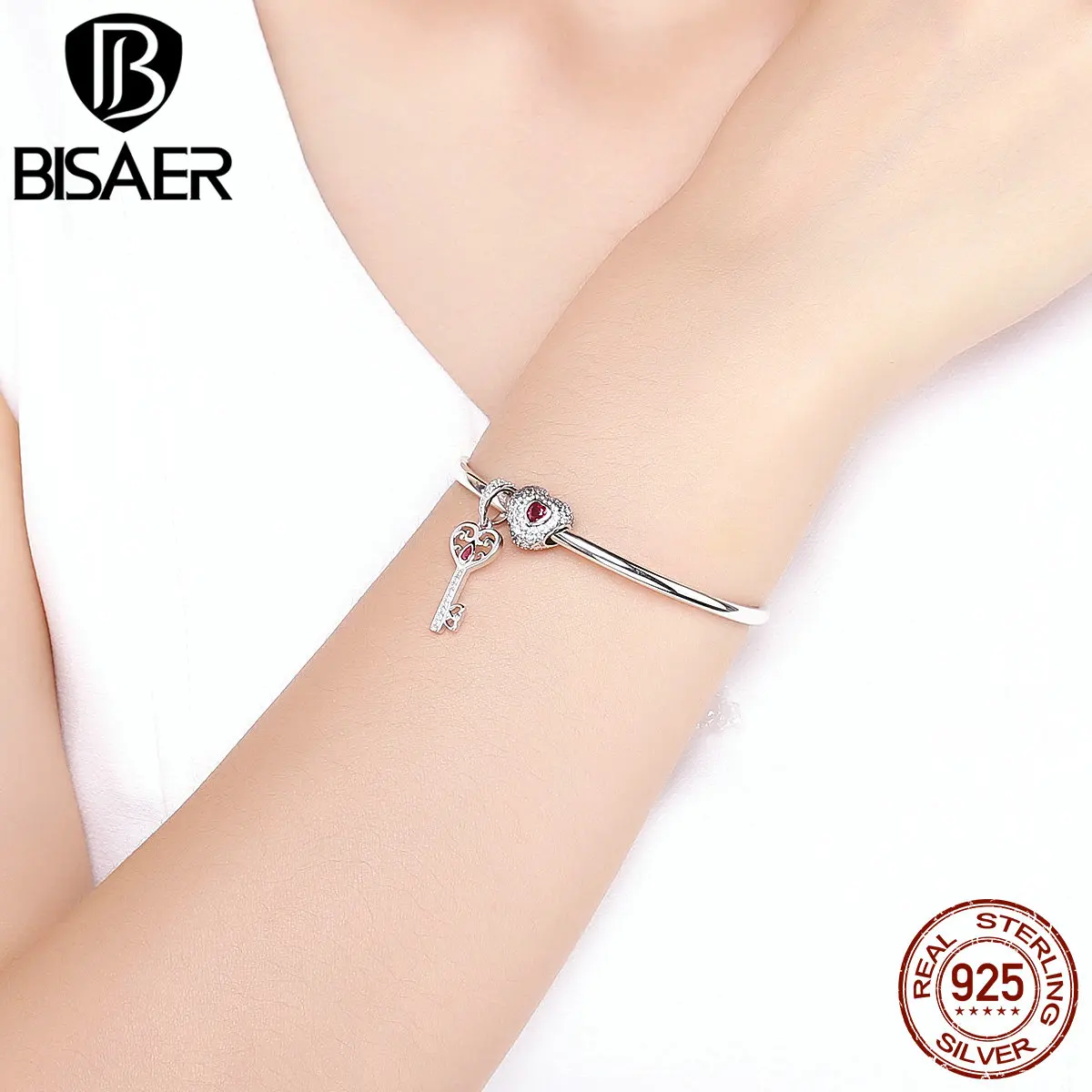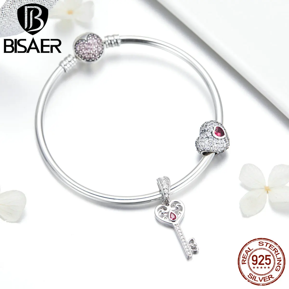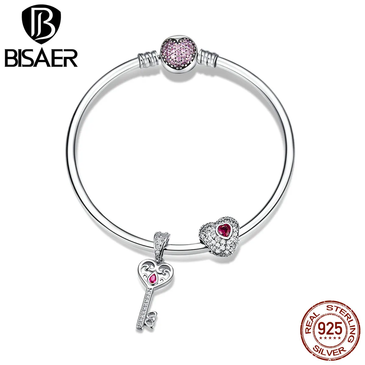 Special Offer BISAER walentynki, prezent 925 srebro Luminous Love Heart Key zapięcie w kształcie serca bransoletka kobiety srebro 925 biżuteria ECB817 Discount 30% Today!