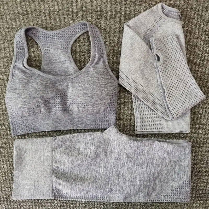 . (Zniżka 31%) Skup Zestawy do jogi Bezszwowe legginsy biustonosz długie rękawy koszula Crop Top kobiety do biegania odzież sportowa na siłownię wysoka talia Fitness biustonosz sportowy spodnie garnitur Najtaniej Cena.
