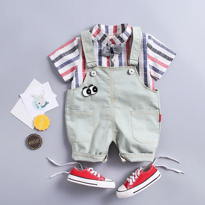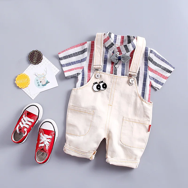 . (Zniżka 31%) Skup Tanie Chłopcy odzież zestaw letnie dzieci z krótkim rękawem w paski T shirt + pończoch spodenki ubrania dla dzieci zestaw 0 3Y Cena.