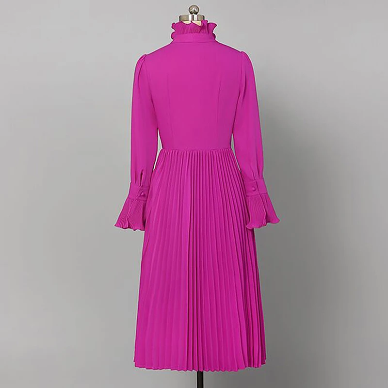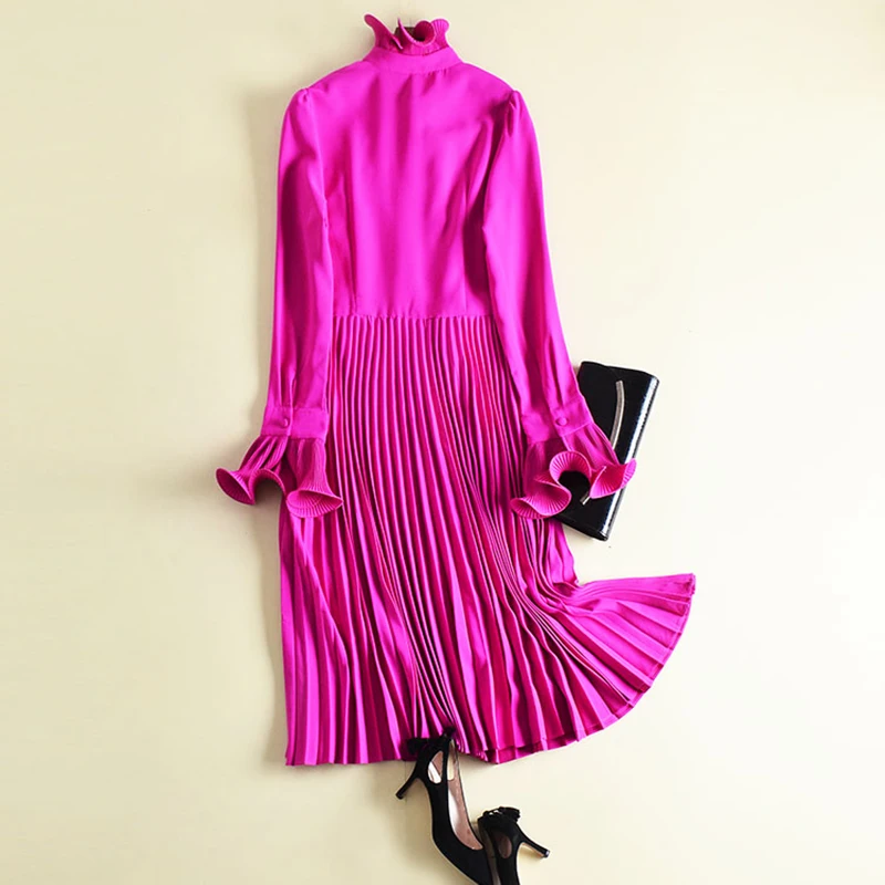 Special Offer Wysoka dobrej jakości, najnowsze 2019 projektant wybieg mody sukienka damska Flare rękawem łuk kołnierz Midi sukienka plisowana Discount 33% Today!