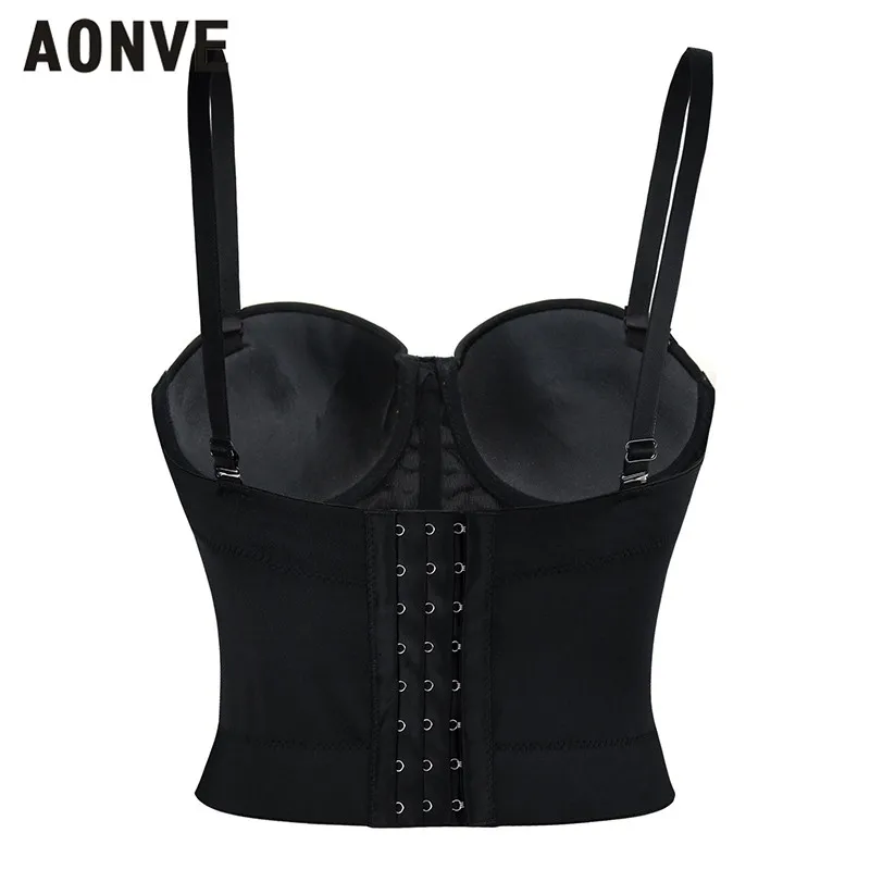 Special Offer AONVE kobiety Steampunk gorset topy biustonoszowe skórzane PU Bralette biustonosze push up dla kobiet gorset waist trainer bielizna wyszczuplająca krótki top Discount 36% Today!