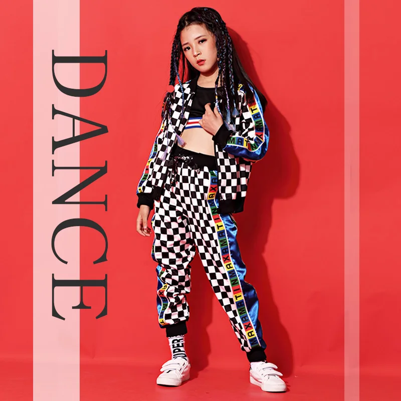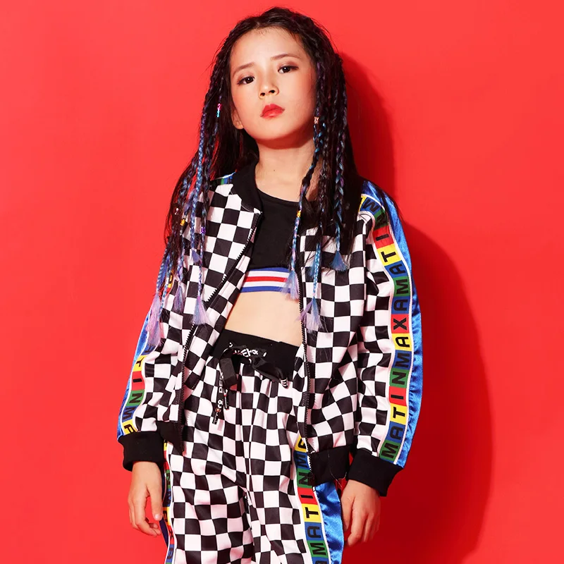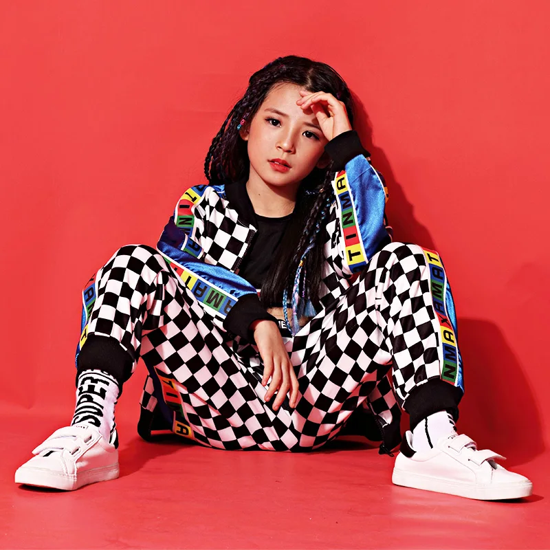 . (Zniżka 39%) Skup Tanie Tide Girls Boys Jazz kostium taneczny zestaw odzież hip hopowa garnitur w kratę Street Dancewear odzież sportowa dla dzieci DL3128 Cena.
