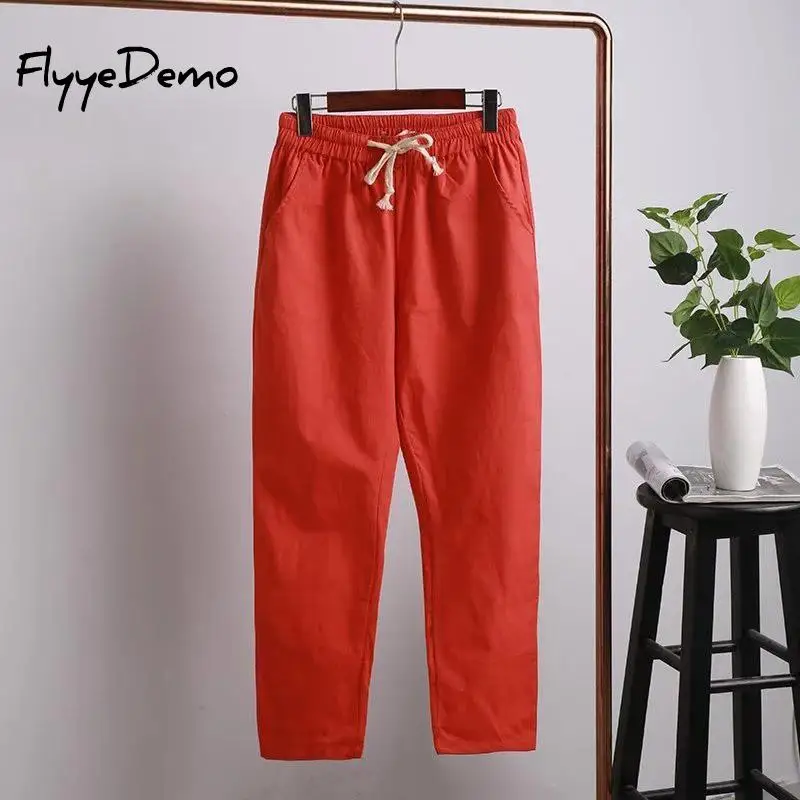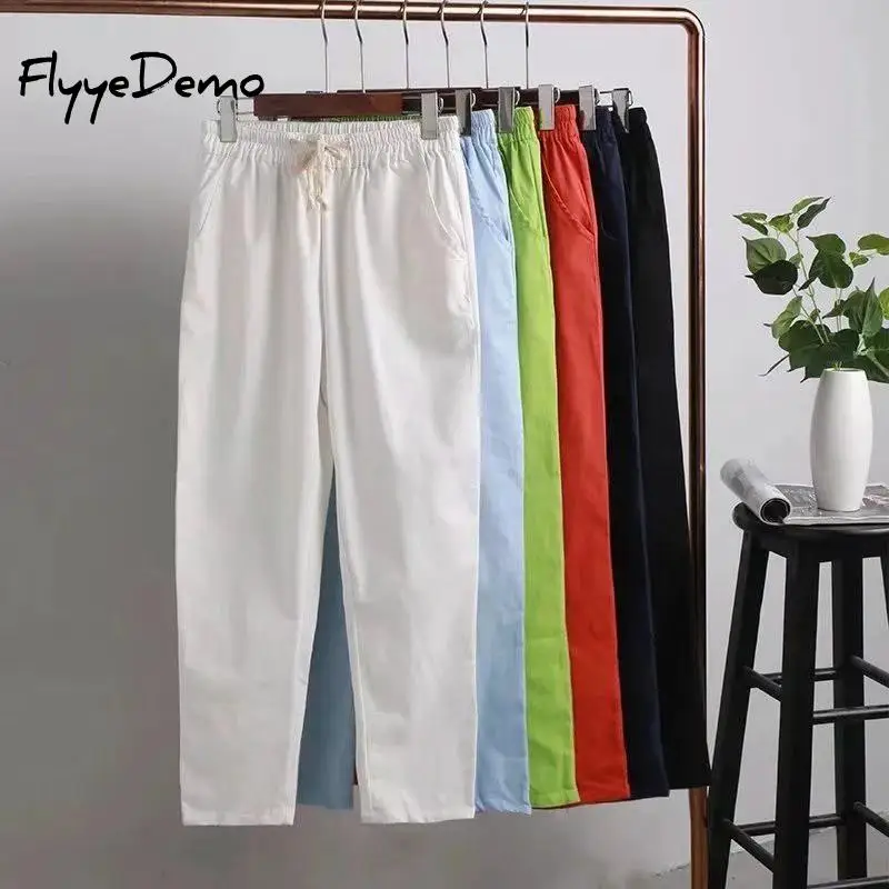 Special Offer Xl 4xl Plus rozmiar 2019 moda lato Skinny kobiety cukierkowe kolory luźne spodnie ołówkowe bawełniane spodnie kieszonkowe spodnie z elastycznym pasem Discount 40% Today!