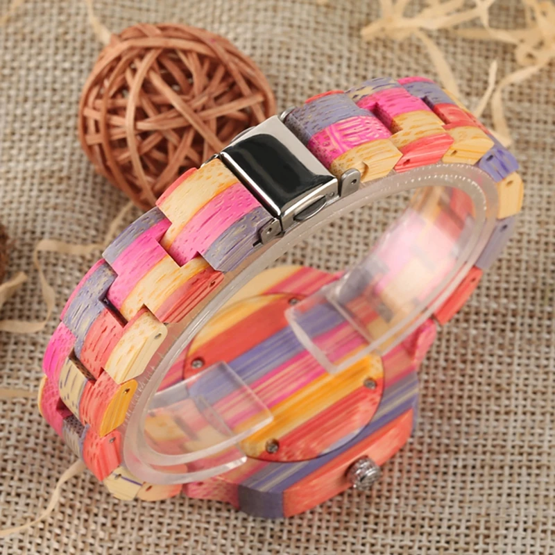 Special Offer Unikatowy kolorowy drewniany zegarek damska pełna drewniana bransoletka sukienka damska zegar ochrona środowiska bambusowy zegarek horloges vrouwen Discount 41% Today!