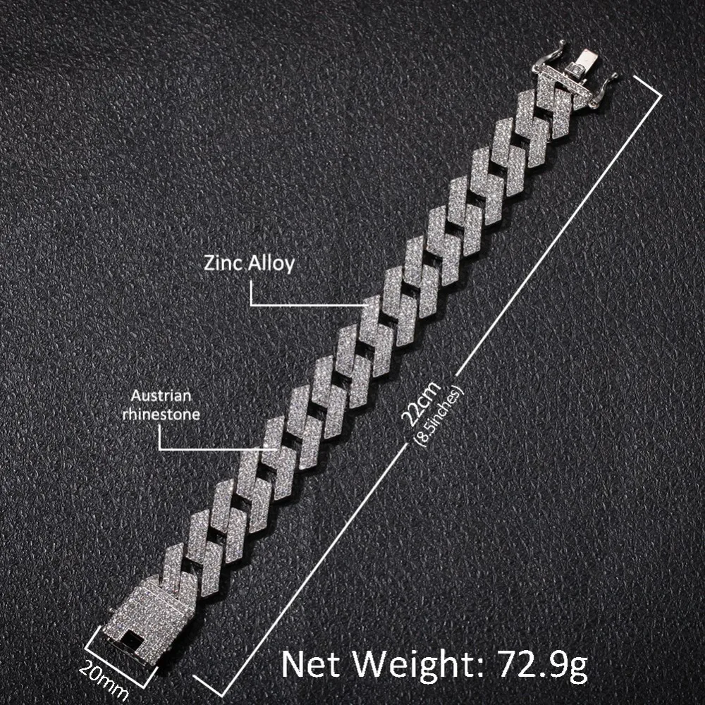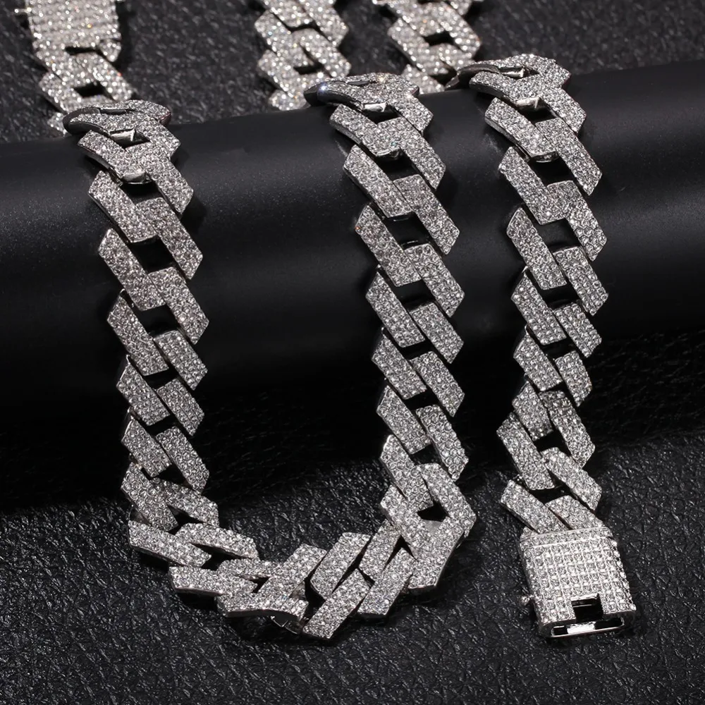 . (Zniżka 43%) Skup BLING KING 20mm Miami Prong kubański łańcuch NE + BA 3 wiersz pełna Iced Out naszyjnik ze strasu i bransoletka mężczyzna Hiphop zestaw biżuterii Najtaniej Ceny.