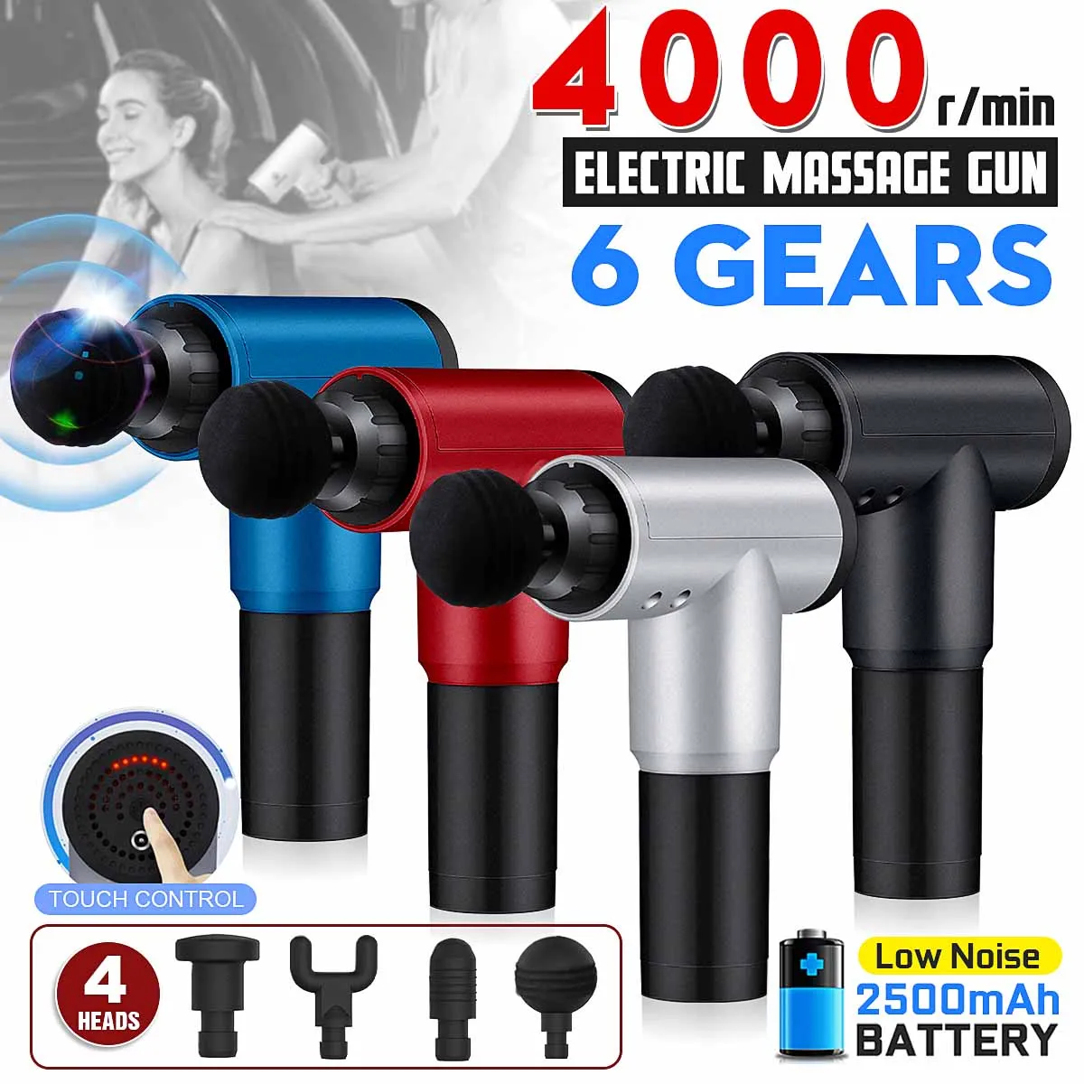 Special Offer 4000r min terapia masaż pistolety 6 biegów masażer mięśni ból Sport urządzenie do masażu relaks wyszczuplanie ciała ulga z 4 głowami Discount 45% Today!