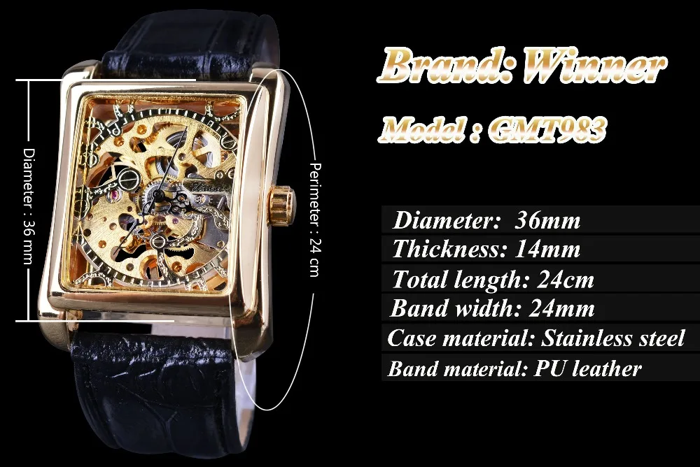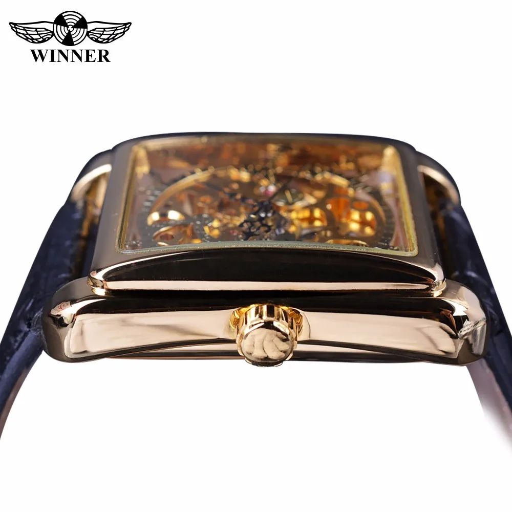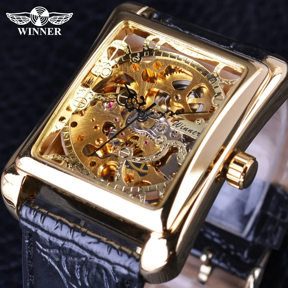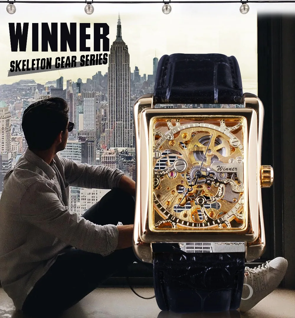Special Offer Zwycięzca 2017 Retro Casual serii prostokąt projekt tarczy zegarka złoty wzór zegarek typu skeleton mężczyźni oglądać najlepsze marki luksusowe mechaniczne Discount 47% Today!