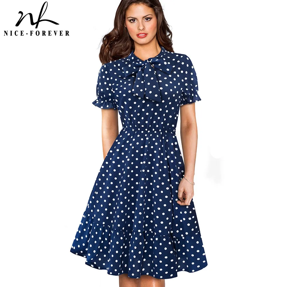 . (Zniżka 50%) Skup Ładny na zawsze eleganckie Vintage kropki Pinup Bow vestidos Business Party kobieta Flare A Line Swing kobiety sukienka A130 Najtaniej Cena.