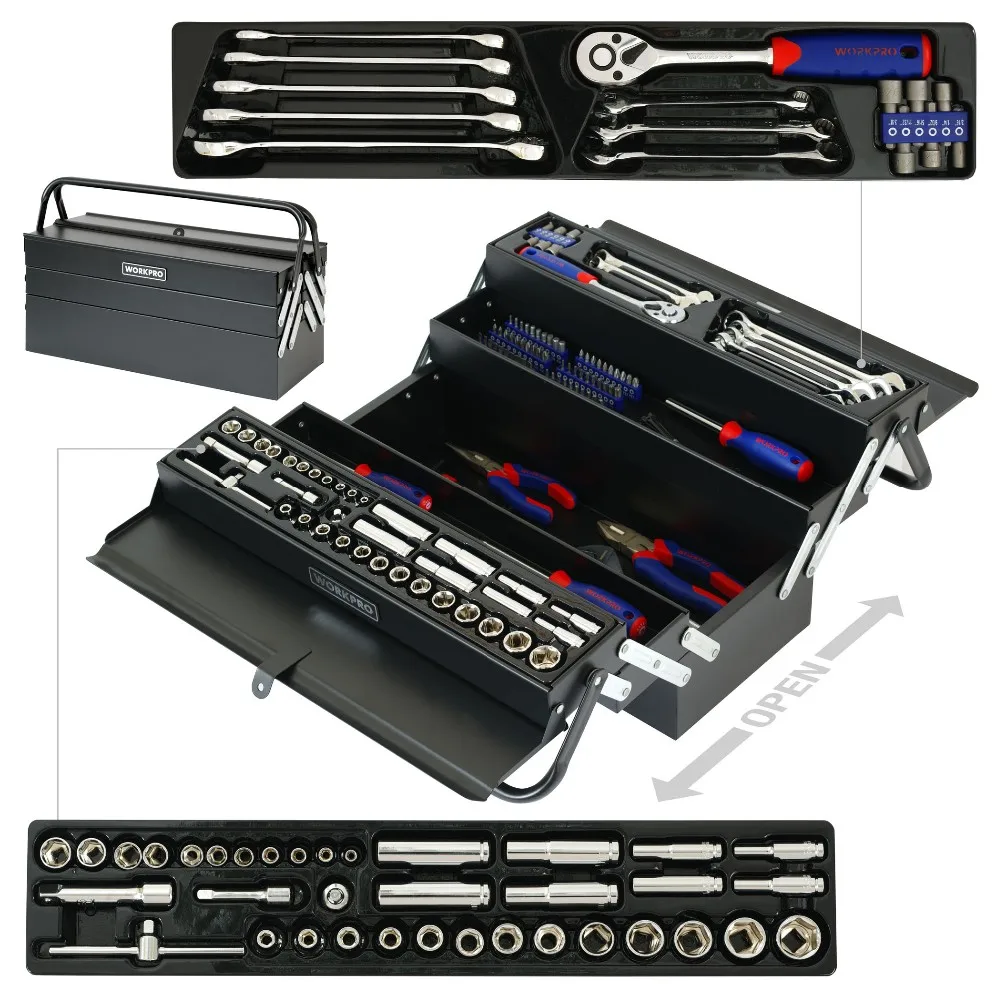 Special Offer WORKPRO 183PC zestaw narzędzi narzędzia do domu metalowe narzędzie zestaw pudełek zestawy narzędzi do napraw zestaw wkrętaków zestaw gniazd Discount 52% Today!