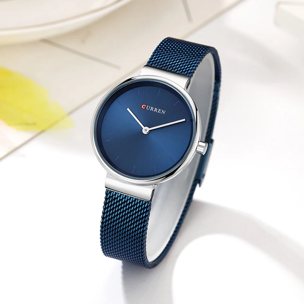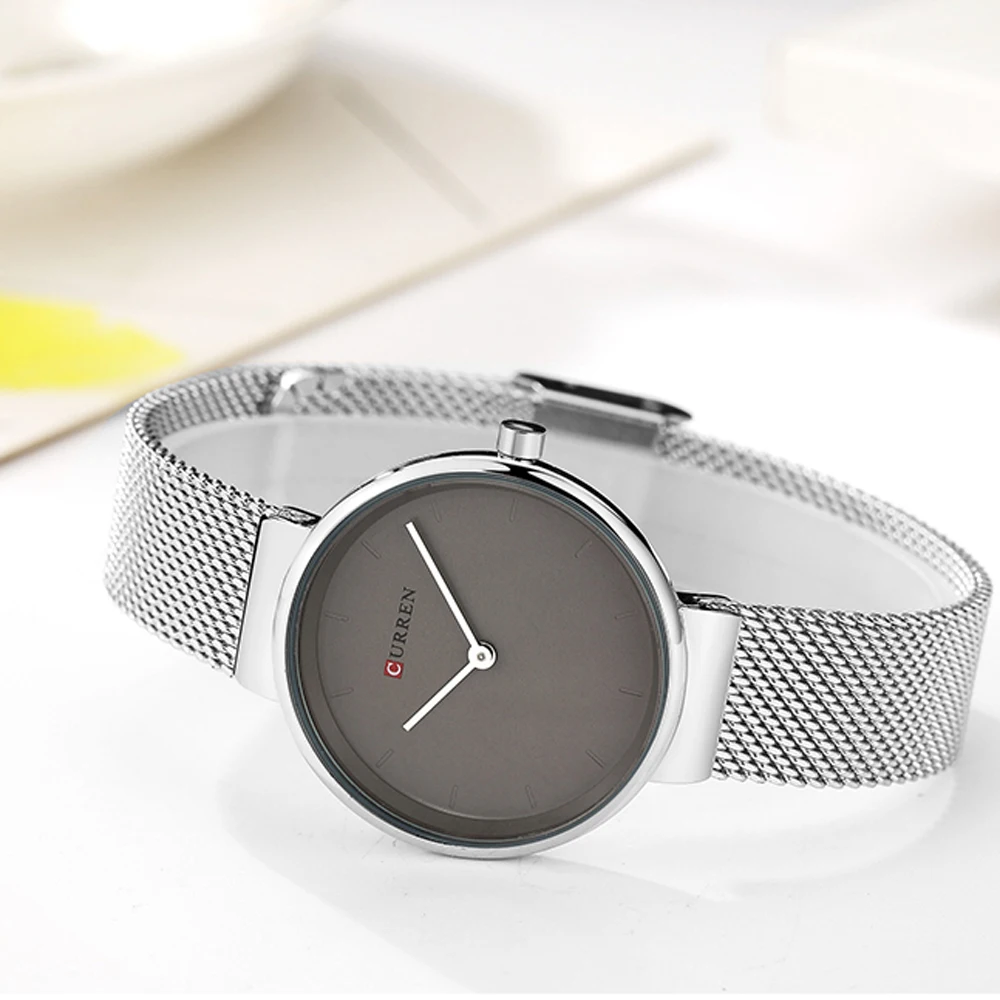 . (Zniżka 61%) Skup Tanie Sukienka damska Mesh bransoletki z zegarkiem ze stali nierdzewnej CURREN prosta moda zegarek kwarcowy kobiety zegar kobieta Montre femme Ceny.
