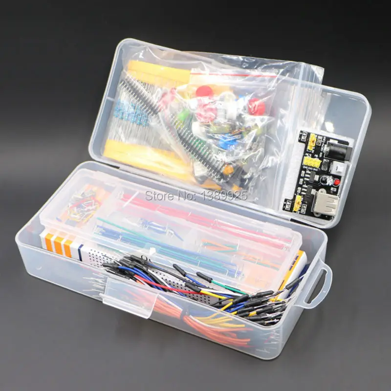 . (Zniżka 0%) Skup Tanie Darmowa wysyłka ogólny pakiet części + 3.3 V 5 V moduł zasilania + MB 102 830 punktów Breadboard + 65 przewody elastyczne + kabel mostkujący box Ceny.