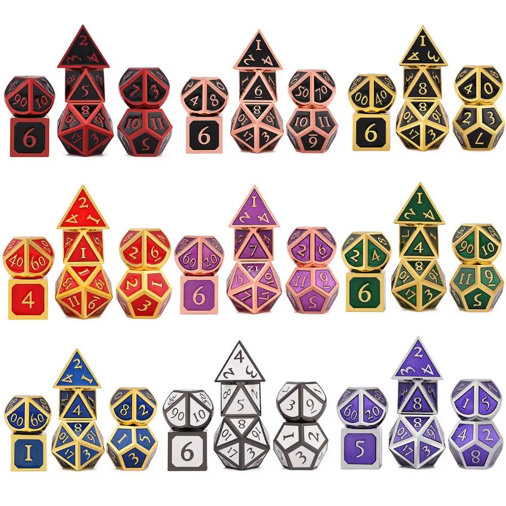 Special Offer DnD metalowe kości wielościenne 7 sztuk zestaw z czarnym aksamitne etui do lochów i smoków gra fabularna MTG gry planszowe RPG kości Discount 0% Today!