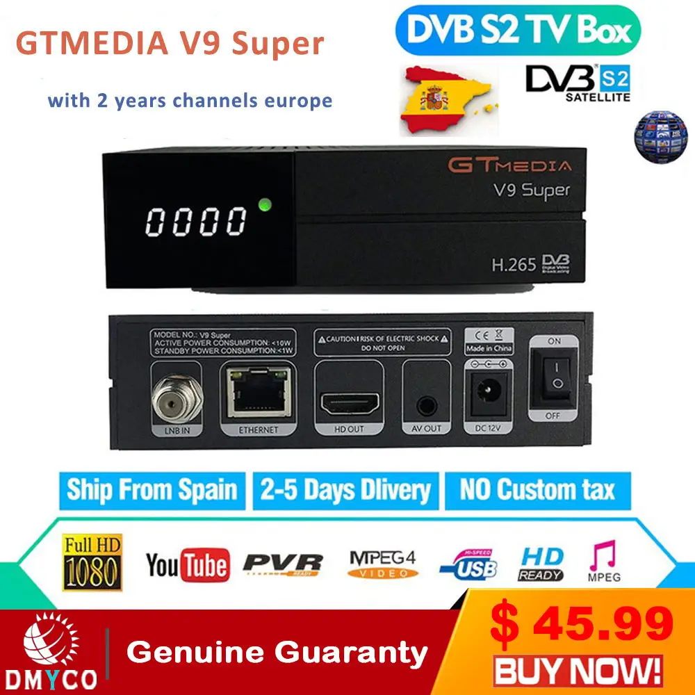 Special Offer 2 lata europa kanały gt media V9 Super odbiornik satelitarny DVB S2 odbiornik satelitarny Full HD dekoder GTMedia Super tv, pudełko Discount 21% Today!