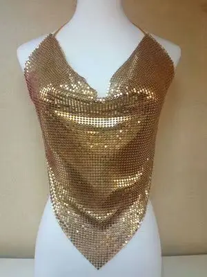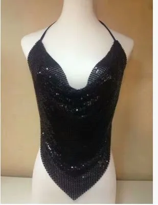 Special Offer Lady Sexy beach club croped topy odsłonięte metalowe Bralette Backless Halter głębokie V głęboki dekolt dżetów cekinami Camis E71768 Discount 29% Today!