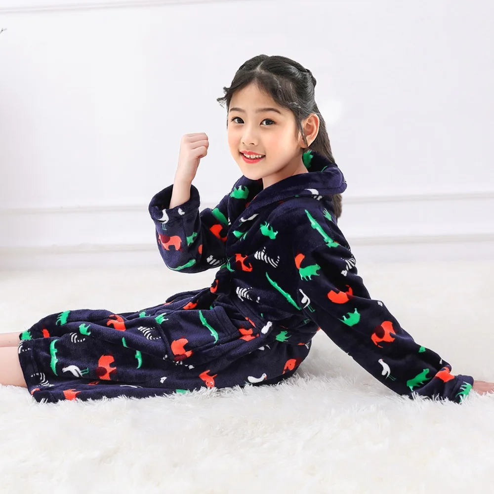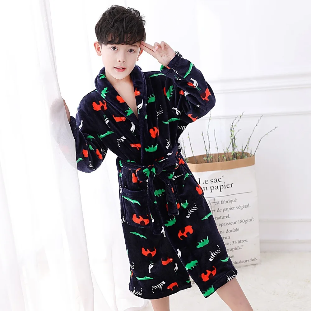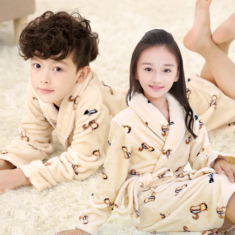 Special Offer Modne flanelowe szlafroki dla dzieci dziewczyny miękkie nastoletnich chłopców bielizna nocna Cartoon niedźwiedź druku piżamy koral aksamitne Bathgrowns Discount 36% Today!