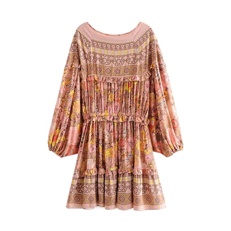 Special Offer Boho elegancka, letnia Vintage kwiatowy nadruk marszczenia Mini sukienka kobiety 2019 moda z długim rękawem muszka sukienki plażowe Femme Vestidos Discount 40% Today!