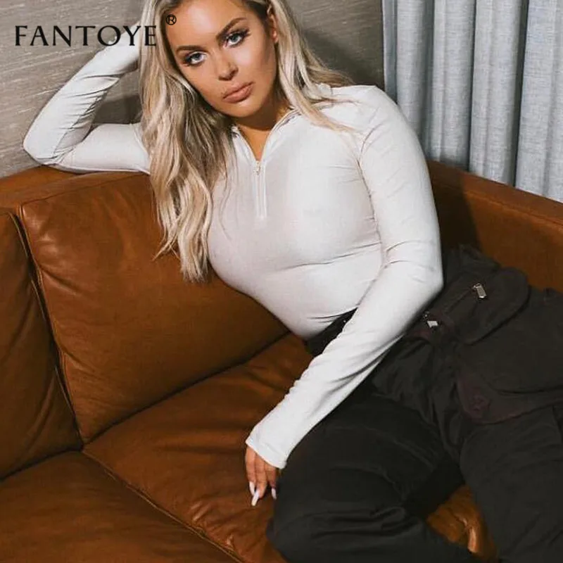 Special Offer Fantoye z długim rękawem na zamek błyskawiczny na szyję Sexy body damskie bluzki elastyczne kombinezony slim kombinezon damski w stylu basic casual kostiumy imprezowe Discount 40% Today!
