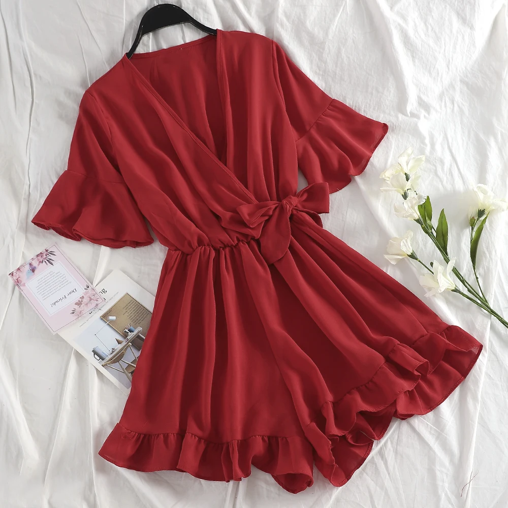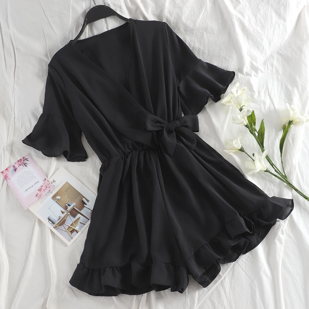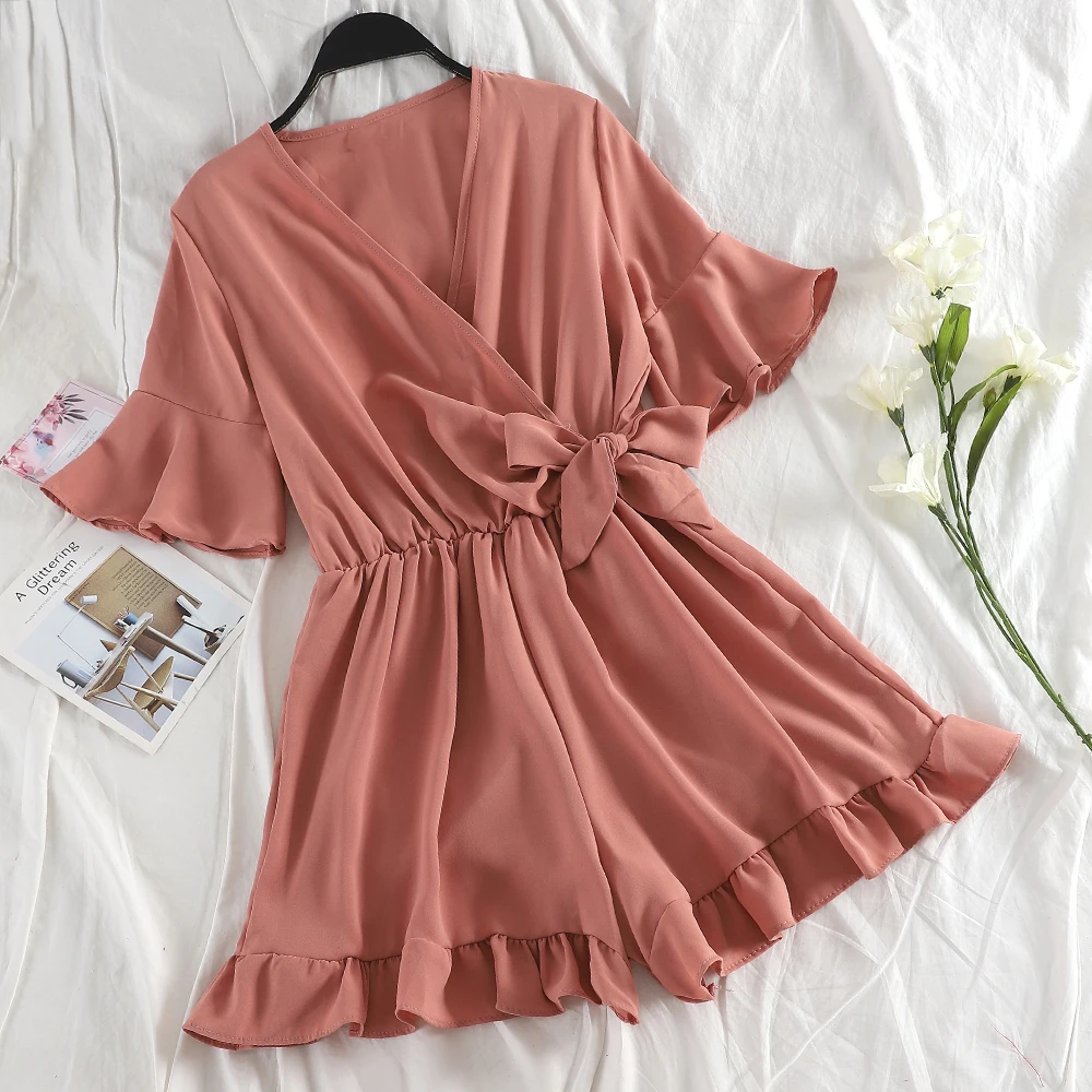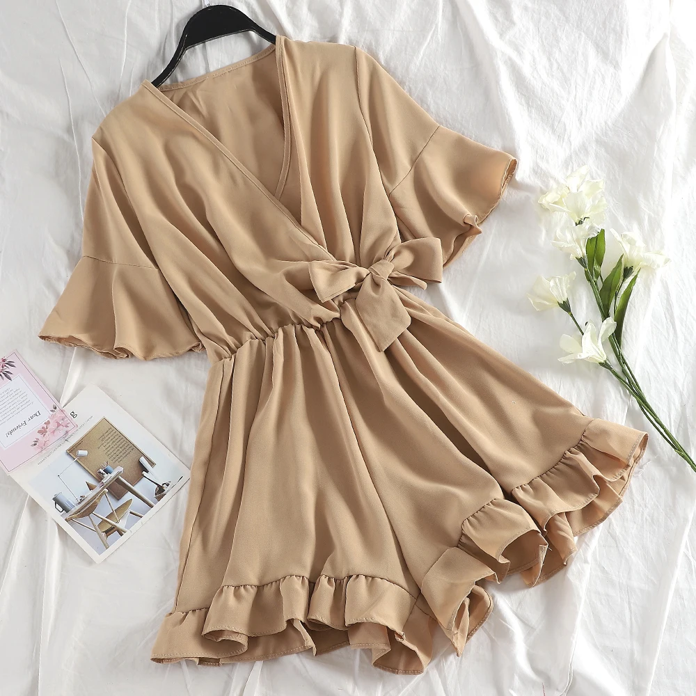Special Offer TAOVK słodki potargane kobiety Playsuits elastyczny, wysoki stan łuk kobiet kombinezon Romper rękaw motylek krótkie ogrodniczki dla dziewczynek Discount 40% Today!
