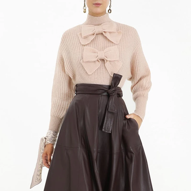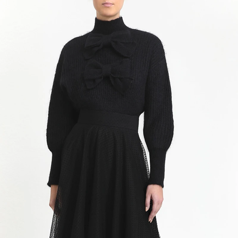 . (Zniżka 51%) Skup CHICEVER Solid Bowknots sweter z dzianiny damskie z golfem latarnia rękaw luźny sweter na co dzień kobieta 2019 jesień nowy Najtaniej Ceny.