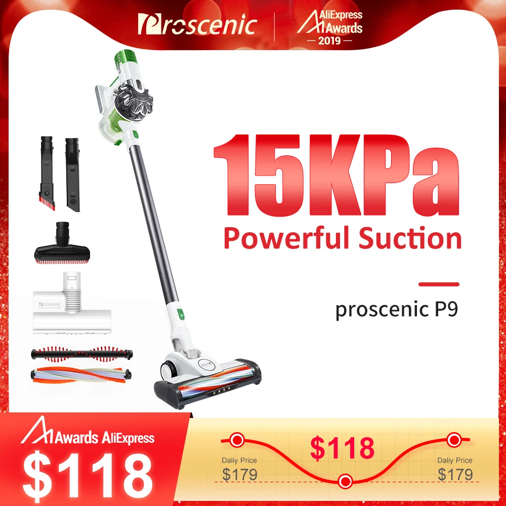 Special Offer Proscenic P9 bezprzewodowy odkurzacz 15000pa silne ssanie pałeczka świetlna led ręczny przenośny odkurzacz 2 w 1 Discount 57% Today!