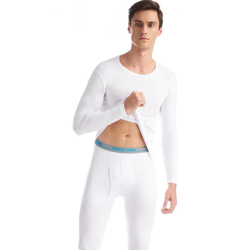 Special Offer THREEGUN Lycra bawełniane kalesony mężczyźni wokół szyi bielizna termiczna oddychające ubrania zimowe męskie bezszwowe ciepłe dna Plus rozmiar Discount 57% Today!