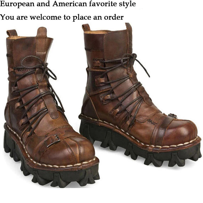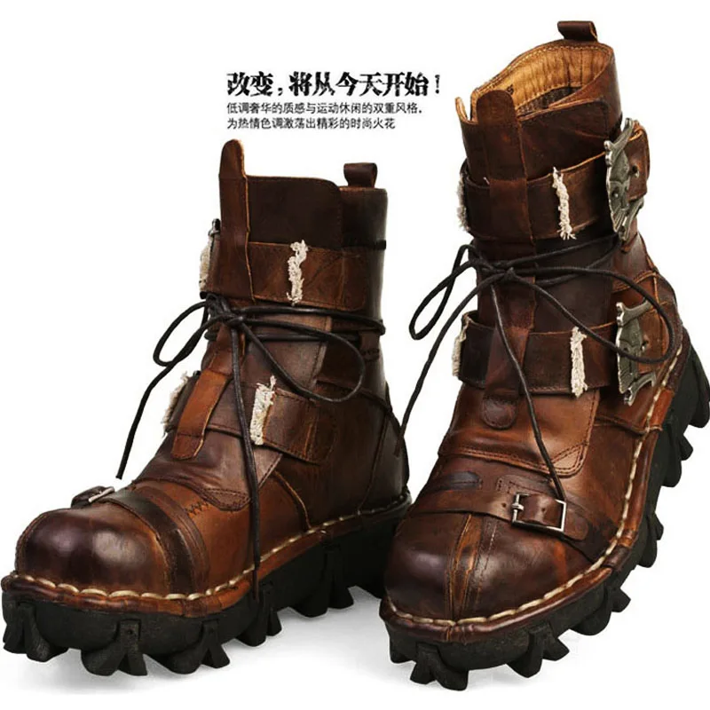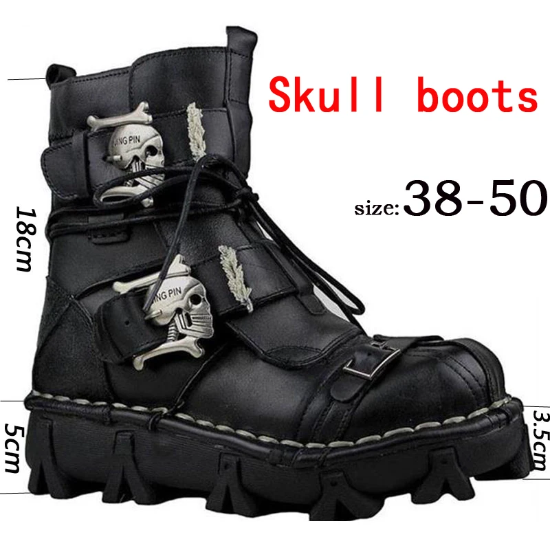 Special Offer Męska skórzana czaszka Gothic Punk buty wojskowe buty motocyklowe skóra bydlęca oryginalne skórzane buty do pracy Martin buty Discount 12% Today!