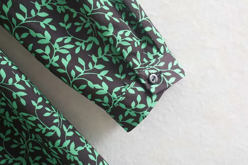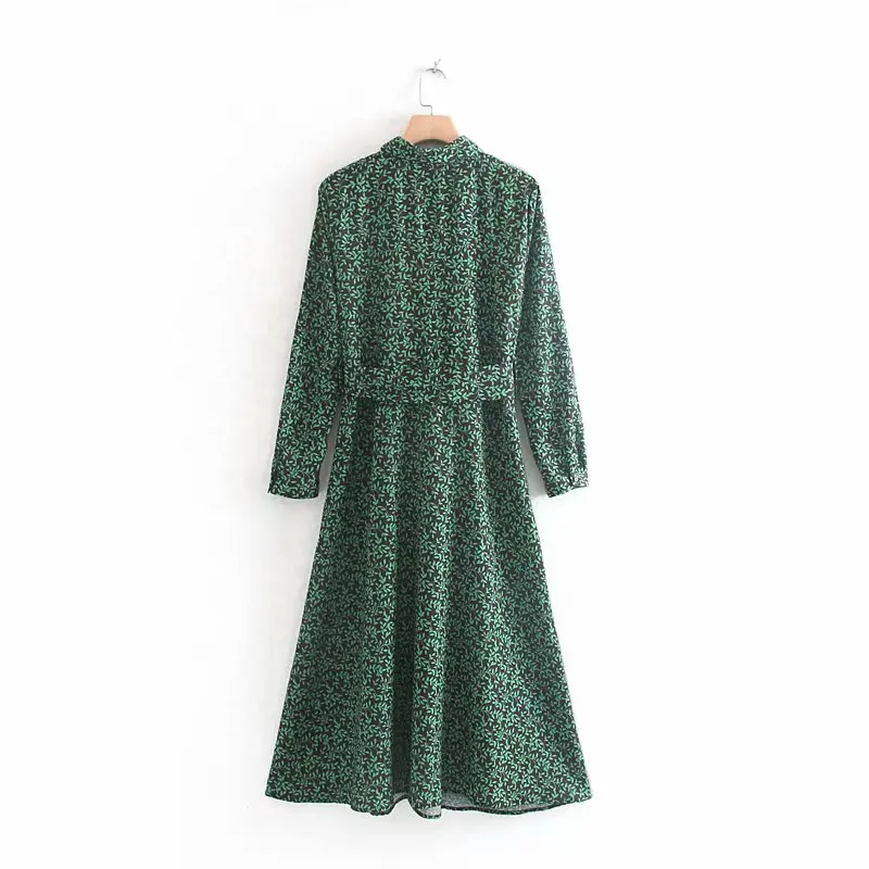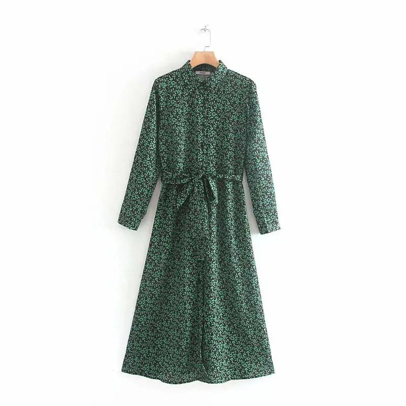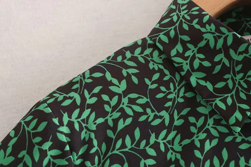 . (Zniżka 24%) Skup Tanie 2019 nowe kobiety w stylu vintage zielone liście druk elegancki shirtdress panie łuk wiązane szarfy vestidos dorywczo szczupła sukienki midi DS2832 Ceny.