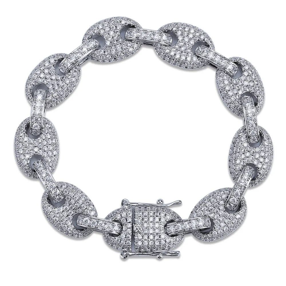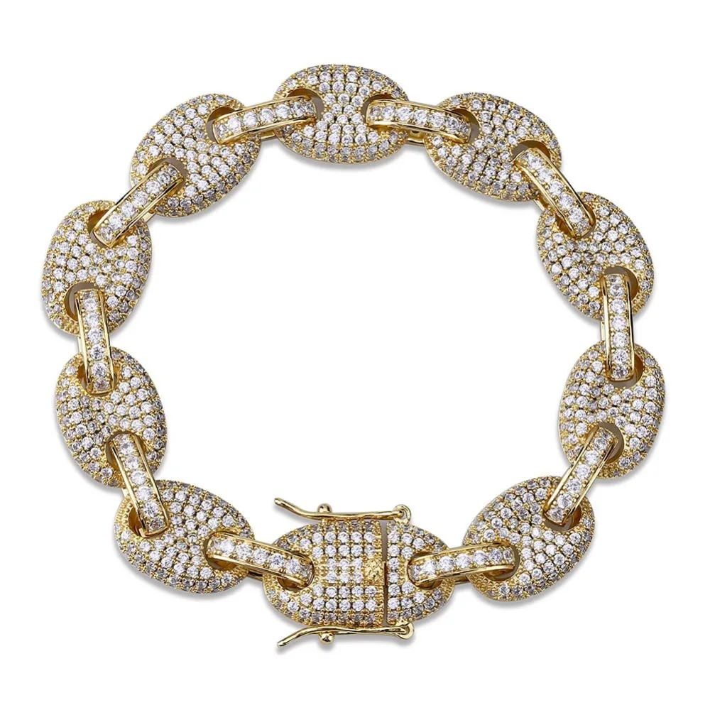 . (Zniżka 25%) Tanie 12MM Rainbow spersonalizowana bransoletka kubańska Link Iced Out męski hip hop biżuteria materiał miedziany złoty kolor srebrny łańcuszek bransoletka Ceny.